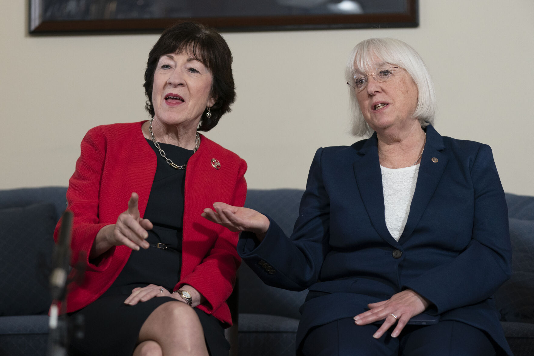 Senate Appropriations Committee ranking member Sen. Susan Collins, R-Maine, left, and Senate Appropriations Committee chair Sen. Patty Murray, D-Wash., speak during an interview with the Associated Press.