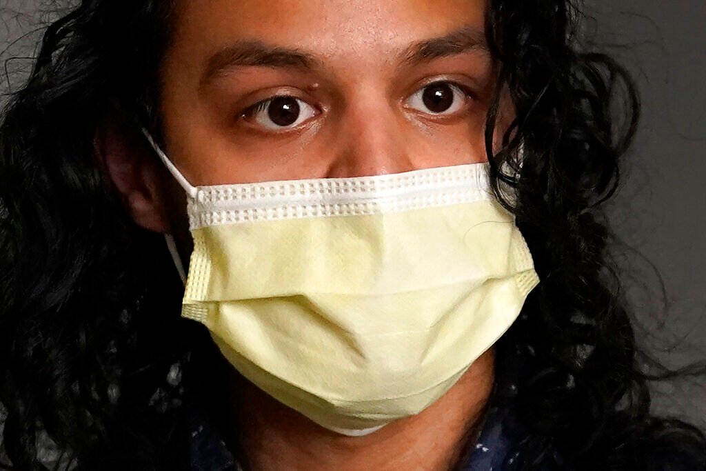 <p>Jonathan Annicks, who is a part-time peer mentor for patients with spinal cord injuries at Schwab Rehabilitation Hospital, visits patient Misael Suarez and his mother Minerva as an orderly passes by Tuesday, March 29, 2022, in Chicago. </p>