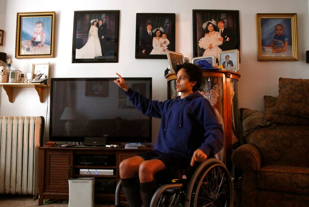 FILE - Jonathan Annicks sits in his wheelchair on June 13, 2016, and recalls the events that left him paralyzed by a lone gunman outside the family home in Chicago.