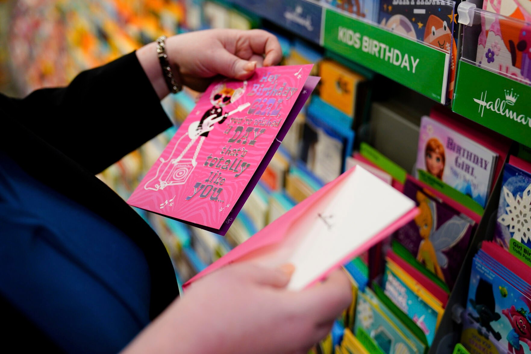 Attorney Robin Frank looks for a birthday card to send to a former client, in Pittsburgh, Thursday, March 17, 2022.