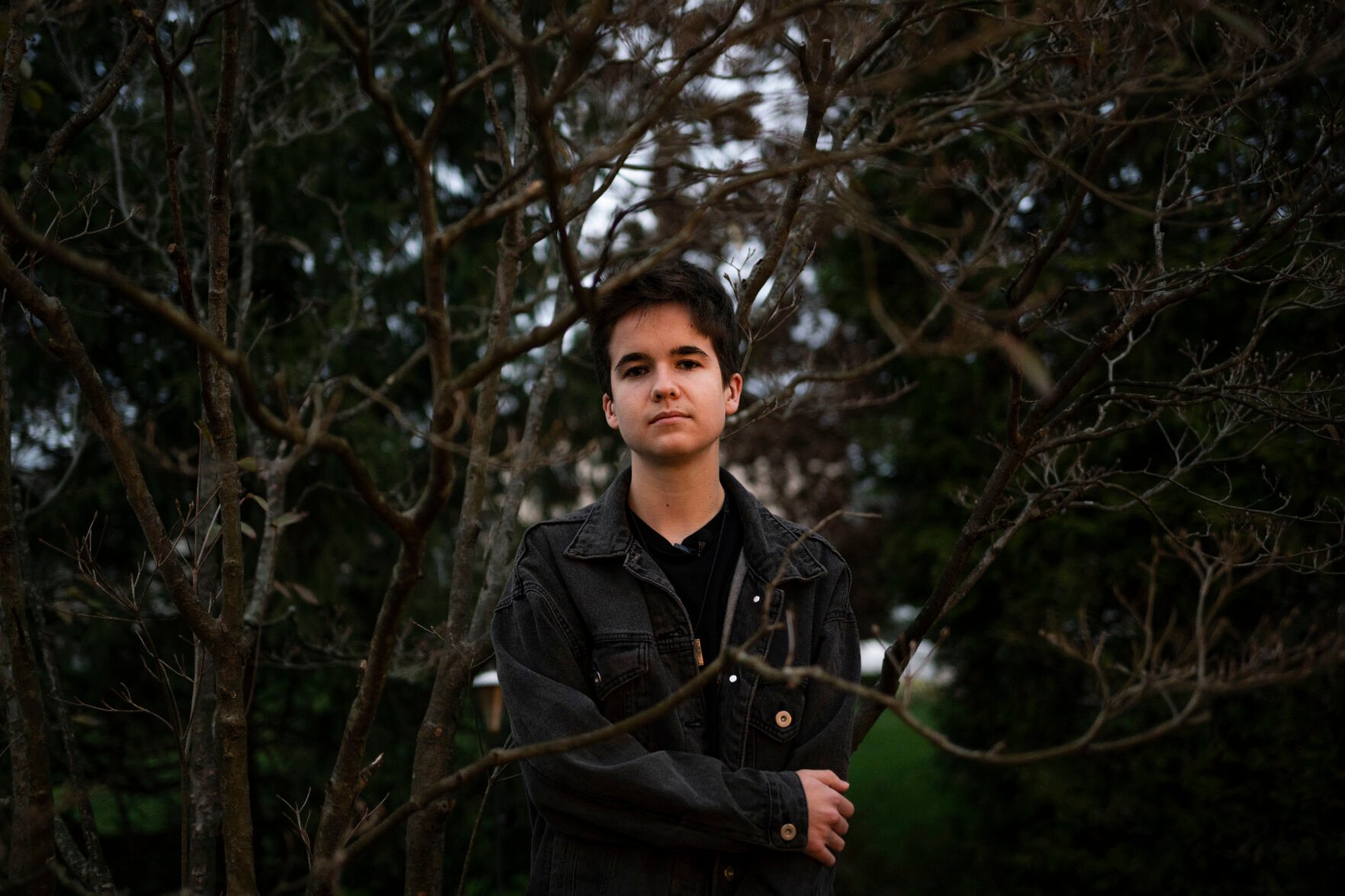 Leo Burchell stands for a portrait outside his family's home in Pennsylvania on Wednesday, Nov. 16, 2022. In late 2020, during the pandemic school closures, Leo Burchell started using different pronouns, trying on new clothes, cutting his hair short. The changes felt right.