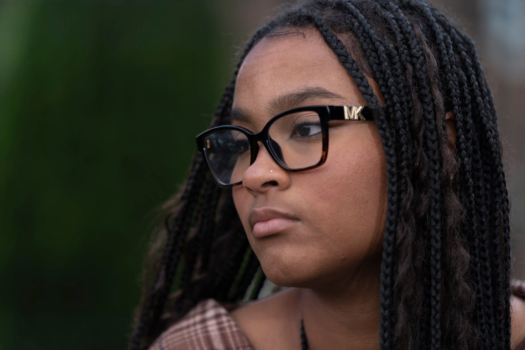 Harmony Kennedy, 16, a high school student, poses for a portrait in Nolensville, Tenn., on Tuesday, May 16, 2023. When the Tennessee legislature began passing legislation that could limit the discussion and teaching of Black history, gender identity and race in the classroom, to Harmony, it felt like a gut punch. "When I heard they were removing African American history, banning LGBTQ, I almost started crying," she says.
