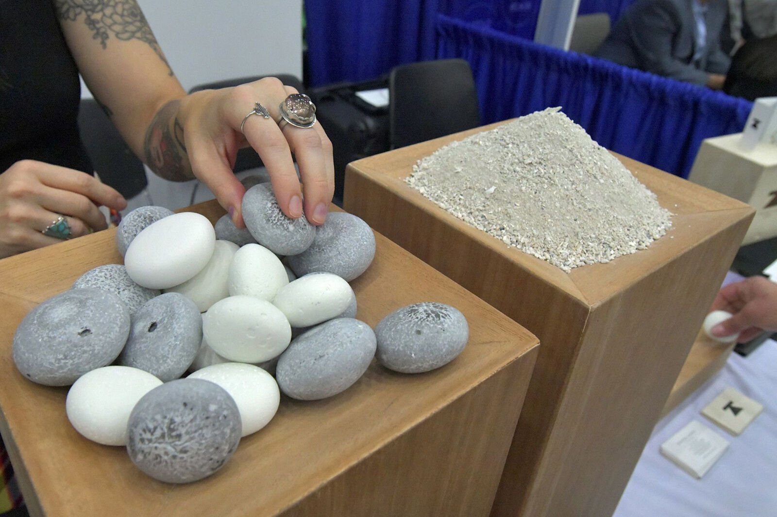 Alexandra Jo of Parting Stone in Santa Fe, New Mexico, handles solidified ashes that are marketed as an alternative form of remains.