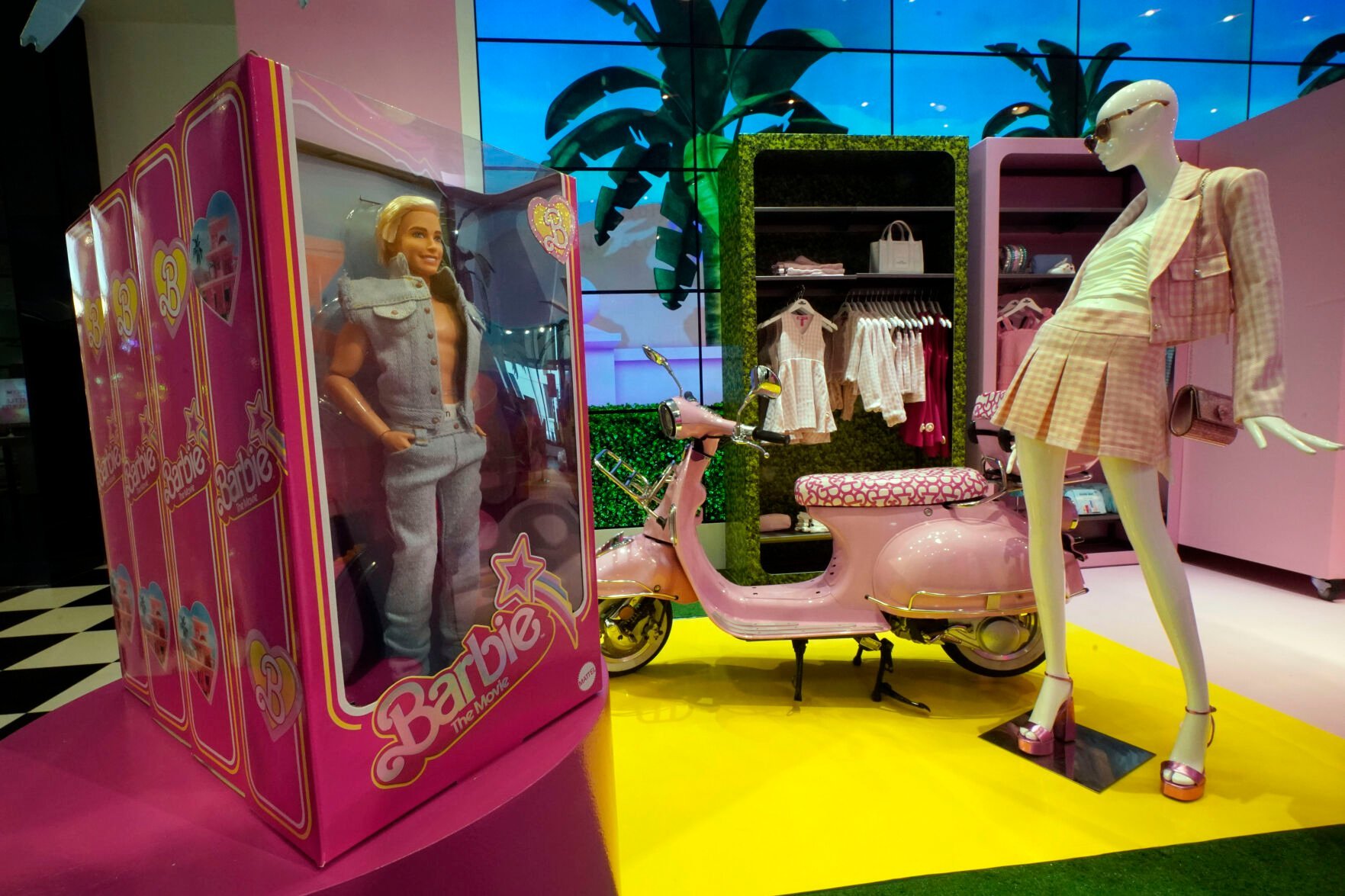 The Balmain x Barbie collection is displayed at Neiman Marcus in Beverly Hills, Calif., on Wednesday, July 19, 2023. The store launched its exclusive Barbie collaboration with Balmain last year and sold out of many items in the first few days. Based on the success of last year’s collaboration and the current Barbiecore cultural phenomenon, it has reissued the collection on Monday. (AP Photo/Richard Vogel)