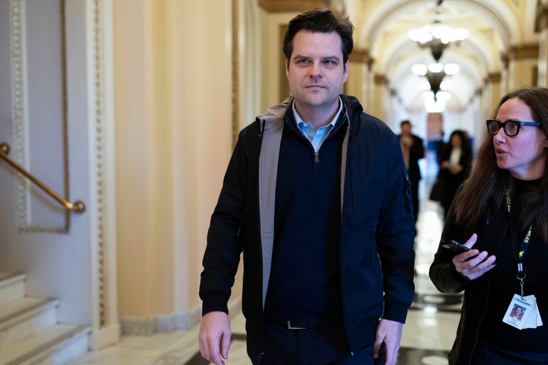 Rep. Matt Gaetz, R-Fla., speaks to reporters as he leaves the House chamber Thursday on Capitol Hill in Washington.