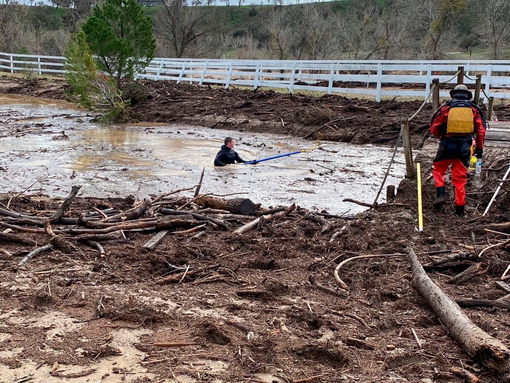 Scotty Jalbert, emergency services manager for San Luis Obispo County, said river crossings can be deceiving and people can run into trouble after successfully fording them several times. As little as 6 inches (15 centimeters) of water is enough to knock a person off their feet and can even push a car off course if it’s moving rapidly.