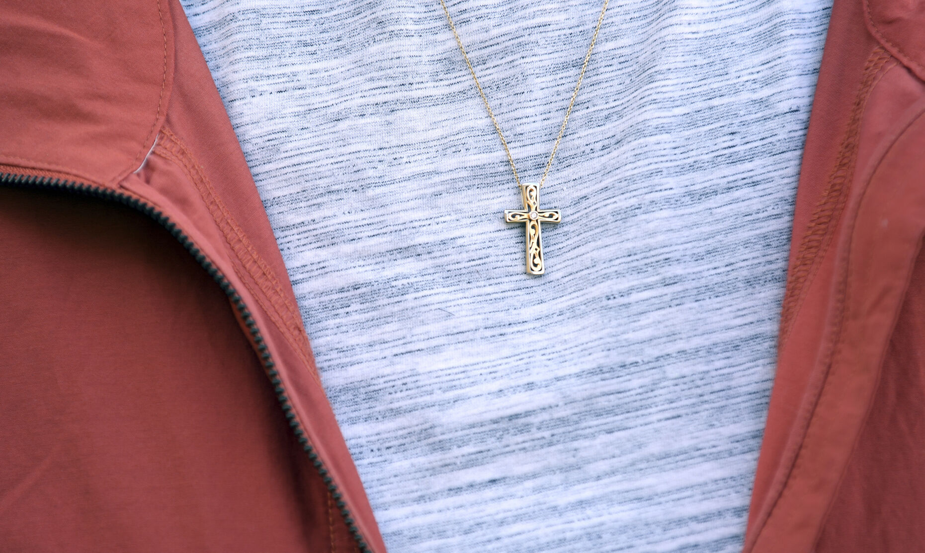 Leilani Lutali wears a cross around her neck at her home in Colorado Springs, Colo.