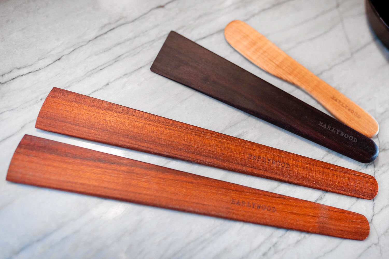 Gift the beauty and craftsmanship of handmade wooden utensils to the cook on your list and watch them elevate the simplest cooking project with tools that were engineered with intention. Durable and sustainable, this elegant 3-piece set will allow cooks to spread, scrape and sauté with the same care they take in preparing special holiday meals and treats. Choose from gorgeous hardwoods jotaba, Mexican ebony, hard maple and bloodwood for your 13” sauté tool, 10” scraper and 8.3” spatula. $43, at Earlywood Designs