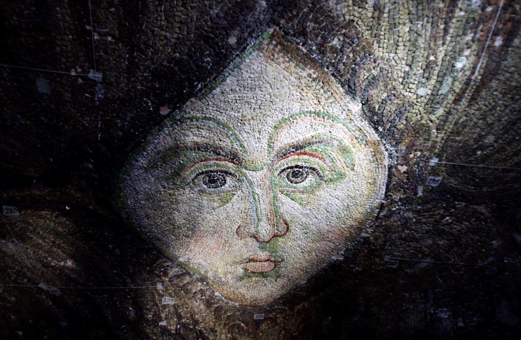 FILE - A well-preserved, long-hidden mosaic depicting the face of an angel which was uncovered by restoration workers at the former Byzantine cathedral of Haghia Sophia in Istanbul, Turkey, is seen on Saturday, July 25, 2009. The seraphim figure _ one of two located on the side of a dome _ had been covered up along with the building's other Christian mosaics shortly after Constantinople _ the former name for Istanbul _ fell to the Ottoman Turks in 1453 and the cathedral was turned into a mosque. The mosaics were plastered over according to Muslim custom that prohibits the representation of humans. (AP Photo/Ibrahim Usta, File)