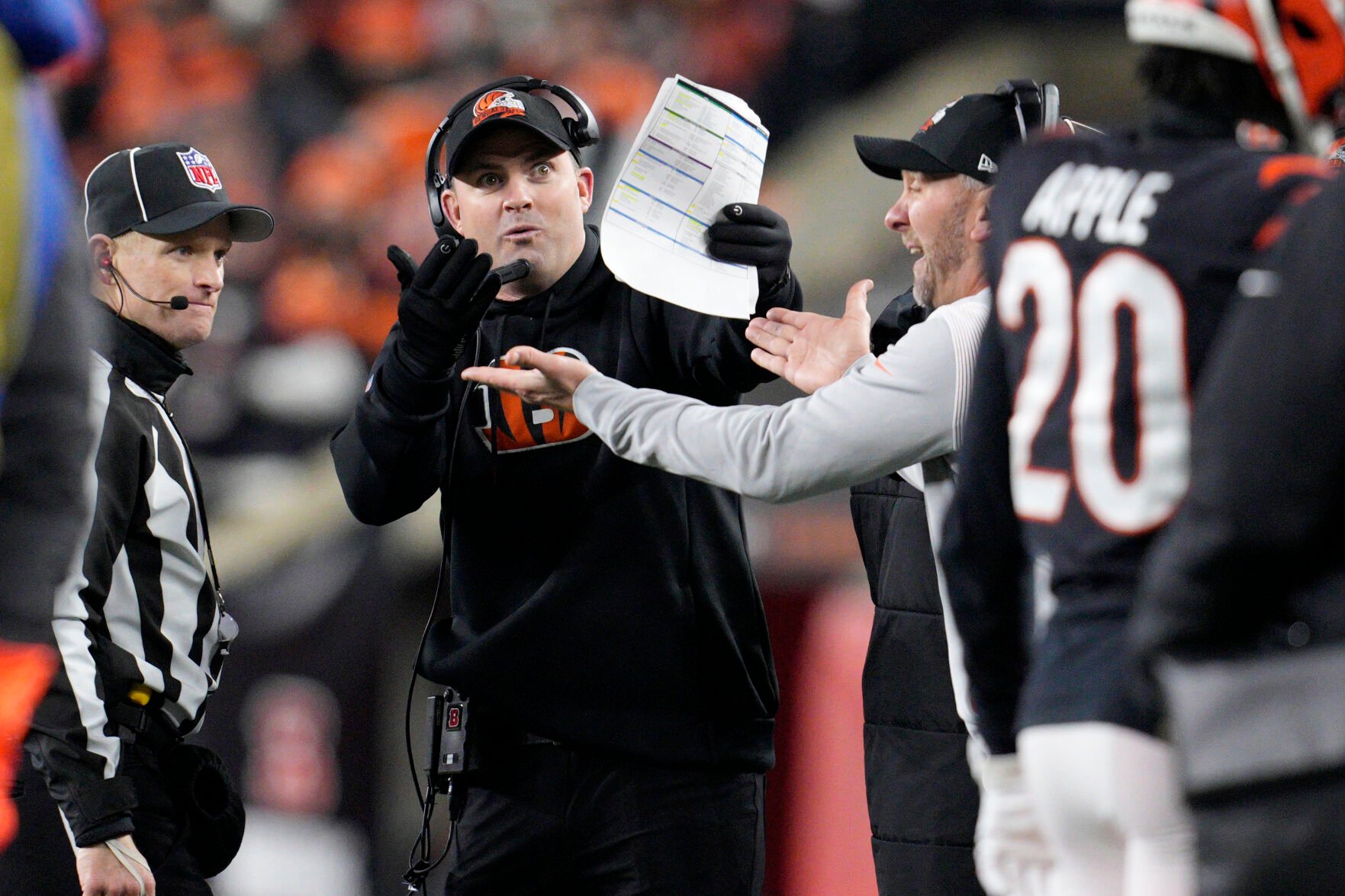 Cincinnati Bengals head coach Zac Taylor reacts on the sidelines in the second half of a Jan. 15 AFC wild card game against the Baltimore Ravens in Cincinnati.