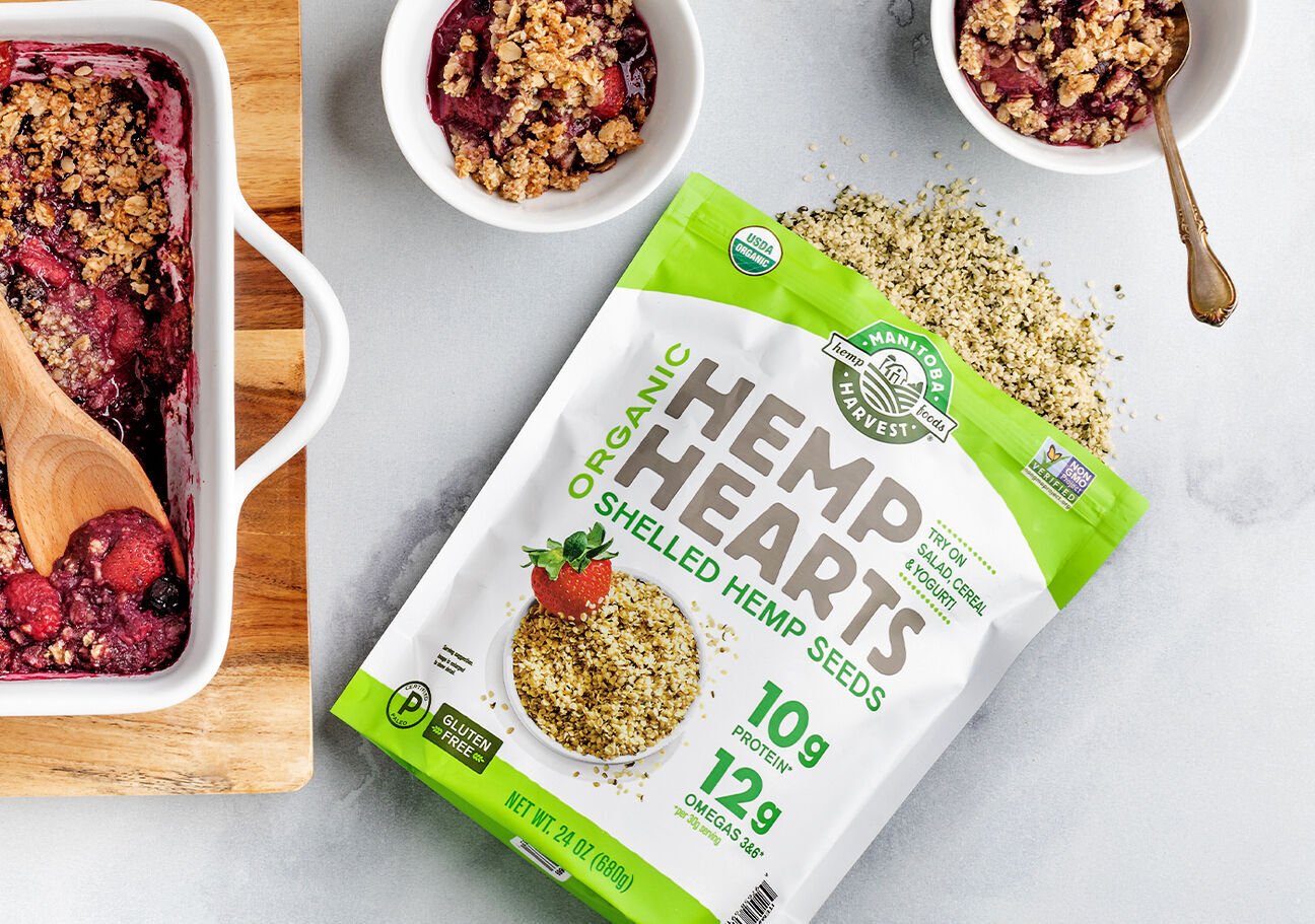 Packed with hemp seeds along with cashews, almonds, rolled oats, crispy brown rice and blueberries, these tasty grab-and-go goodies are like a revved-up granola bar, ideal for a quick breakfast or healthy snack. The texture is satisfyingly chewy, and the nuts add crunch for interest. And because the hemp seeds are hulled, they’re easy for your body to digest. Clocking in at just 120 calories, this is yummy hemp nutrition you can feel good about eating.