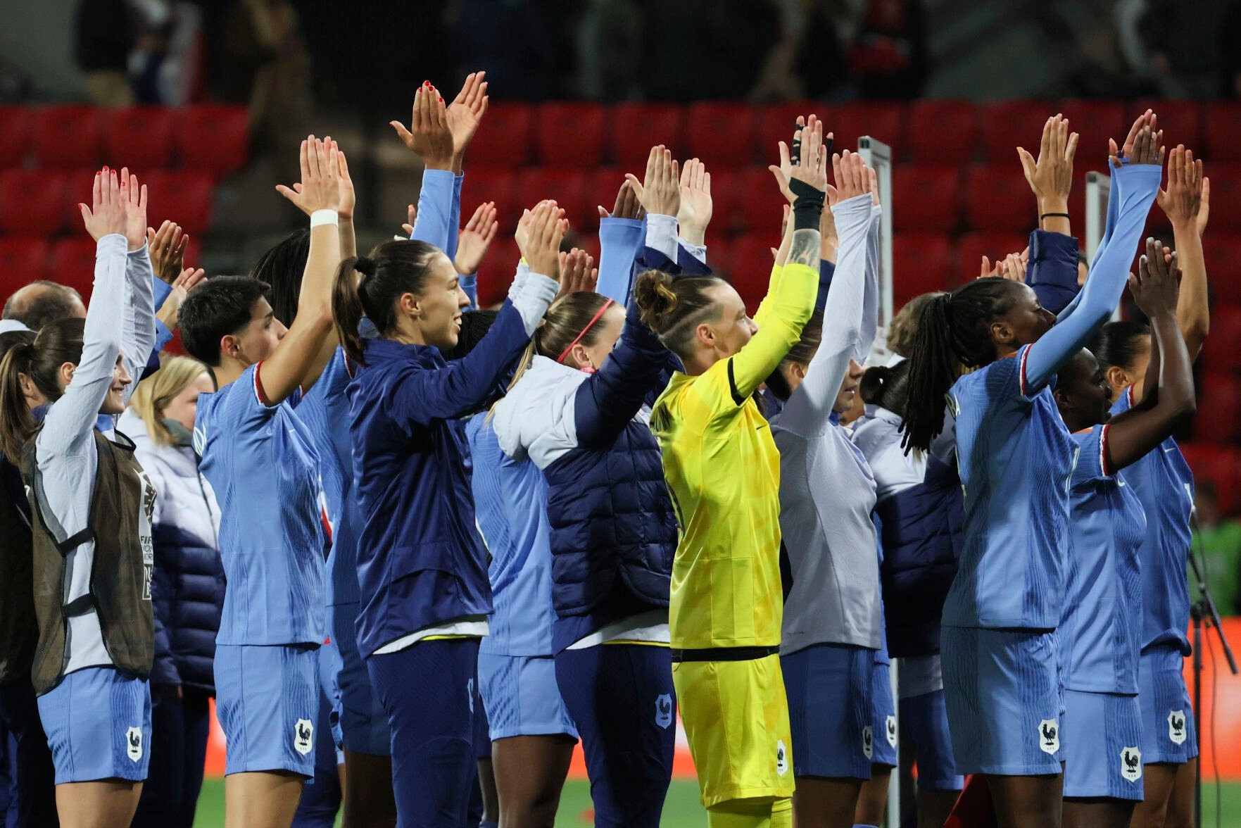 France gesture to their supporters following the Women's World Cup round of 16 soccer match between France and Morocco in Adelaide, Australia, Tuesday, Aug. 8, 2023. (AP Photo/James Elsby)