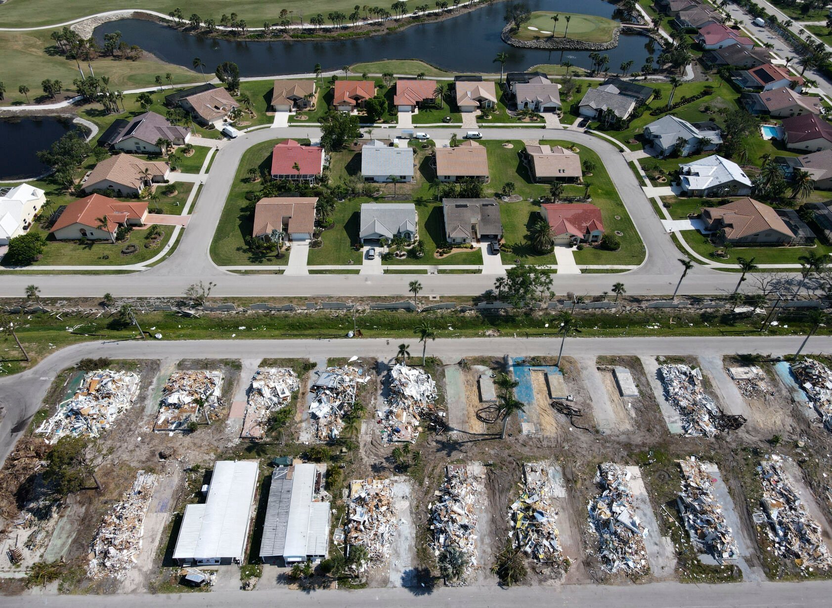 The remains of homes demolished after heavy damage from Hurricane Ian are seen in the Tropicana Sands mobile home park May 10 in Fort Myers, Fla.