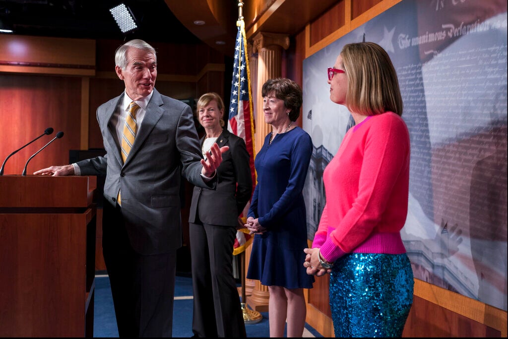 In addition to Collins, Romney, Portman and Tillis, Republicans supporting the legislation were Richard Burr of North Carolina, Todd Young of Indiana, Shelley Moore Capito of West Virginia, Joni Ernst of Iowa, Roy Blunt of Missouri, Cynthia Lummis of Wyoming and Lisa Murkowski and Dan Sullivan of Alaska.