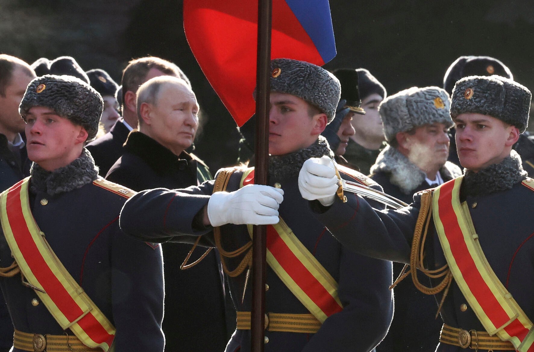Russian President Vladimir Putin attends a wreath-laying ceremony Thursday at the Unknown Soldier's Grave in the Alexander Garden during the national celebrations of the "Defender of the Fatherland Day" in Moscow.