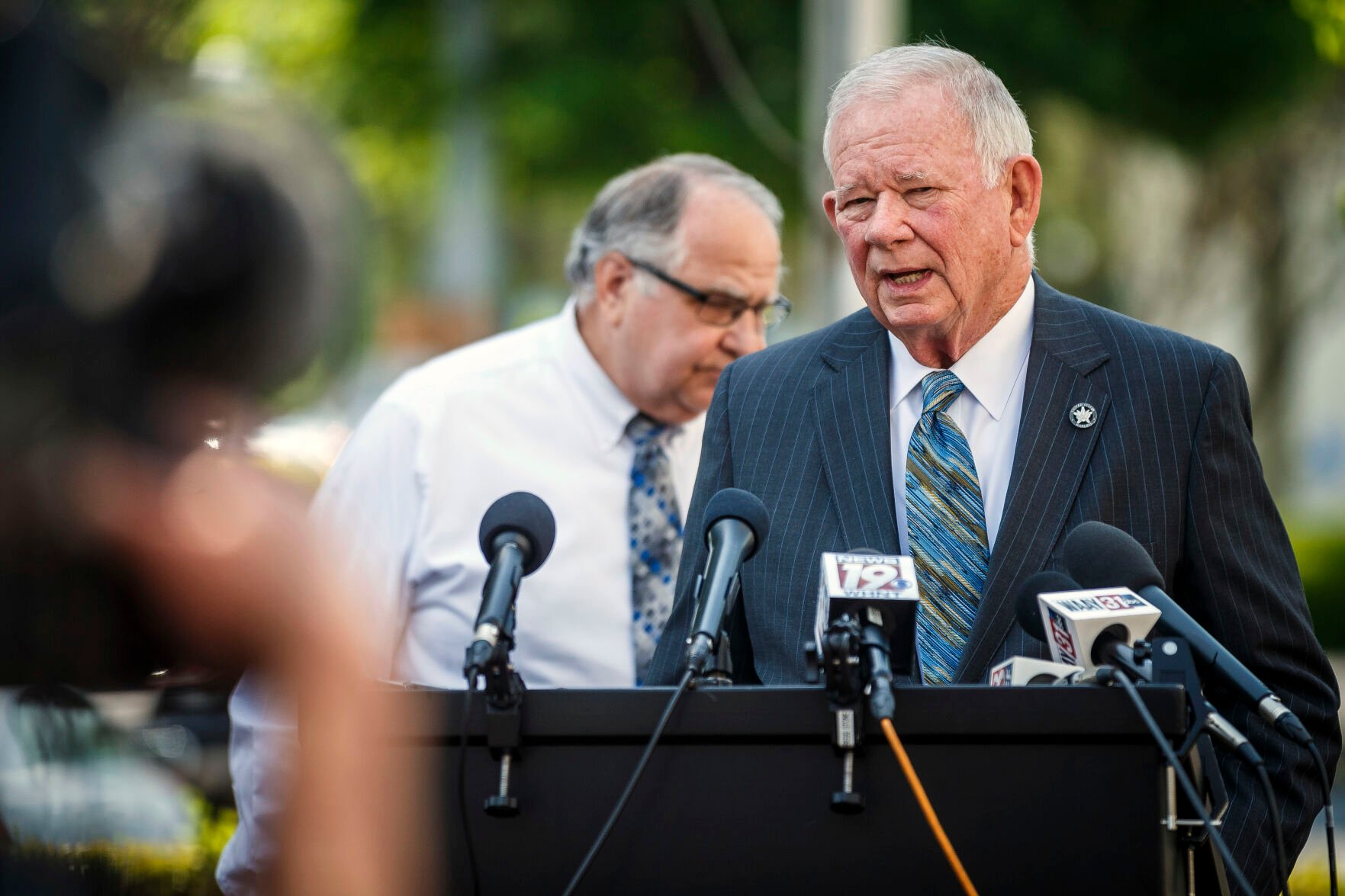 Lauderdale County Sheriff Rick Singleton announces a warrant for the arrest of Vicky White, Lauderdale County Assistant Director of Corrections, during a news conference outside of the Lauderdale County Courthouse in Florence, Monday, May 2, 2022. [DAN BUSEY/TIMESDAILY]/The TimesDaily via AP)