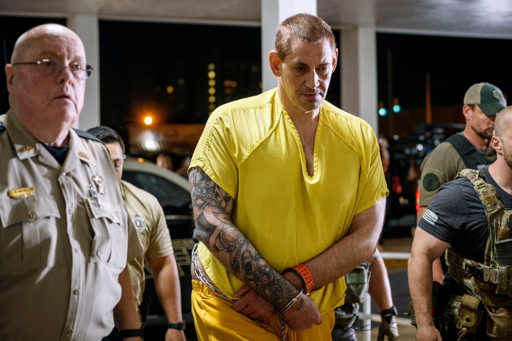Escaped inmate Casey White, center, arrives at the Lauderdale County Courthouse in Florence, Ala., after waiving extradition in Indiana Tuesday, May 10, 2022.