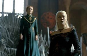 The trailer offers a peek into the volatile world of Westeros where King Viserys (Paddy Considine) sits on the Iron Throne in King’s Landing. When considering his heir to the throne, King Viserys looks to eldest child Princess Rhaenyra Targaryen (played as a child by Milly Alcock and as an adult by Emma D’Arcy). But a woman in charge raises mixed reactions as some pull for Viserys’ brother, Prince Daemon Targaryen (Matt Smith).
