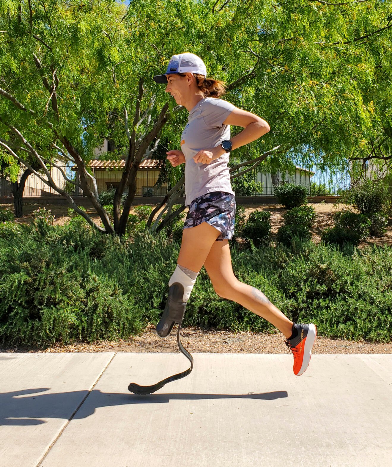 She worried her stump would become raw and painful, and the first two weeks were rough. Since then, though, she’s gotten into a sustainable rhythm, taking care to ice and massage the stump. When it became swollen, she switched to a running prosthesis with a little more room.