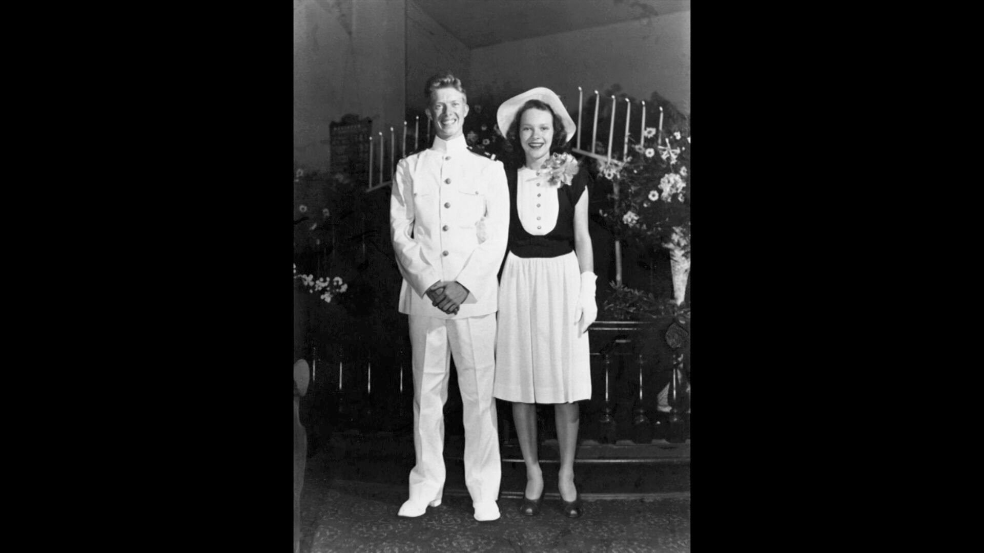 FILE - Jimmy and Rosalynn Carter pose for a photo during their wedding July 7, 1946, in Plains, Georgia. Jimmy and Rosalynn are celebrating their 77th wedding anniversary, Friday, July 7, 2023.