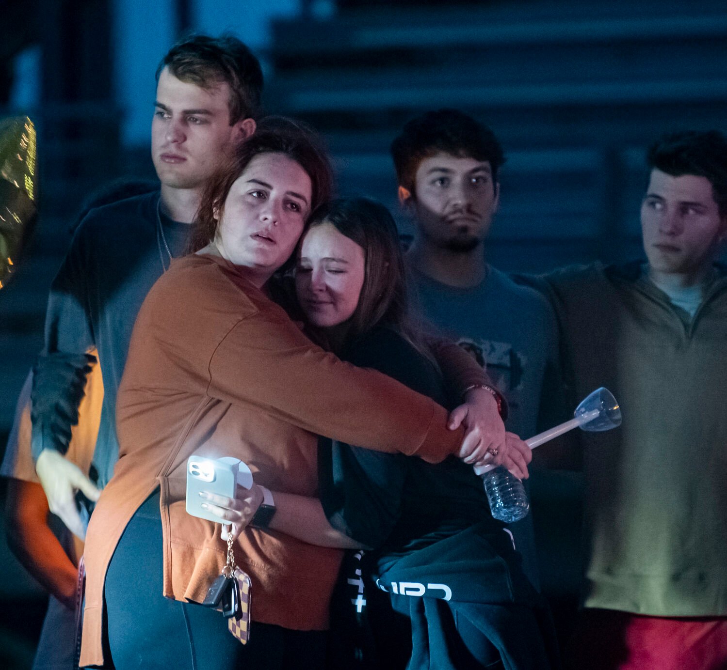 Family members of Maggie Dunn hug during the Candlelight vigil for Dunn and Caroline Gill on Monday, Jan. 2, 2023 in Brusly, La.