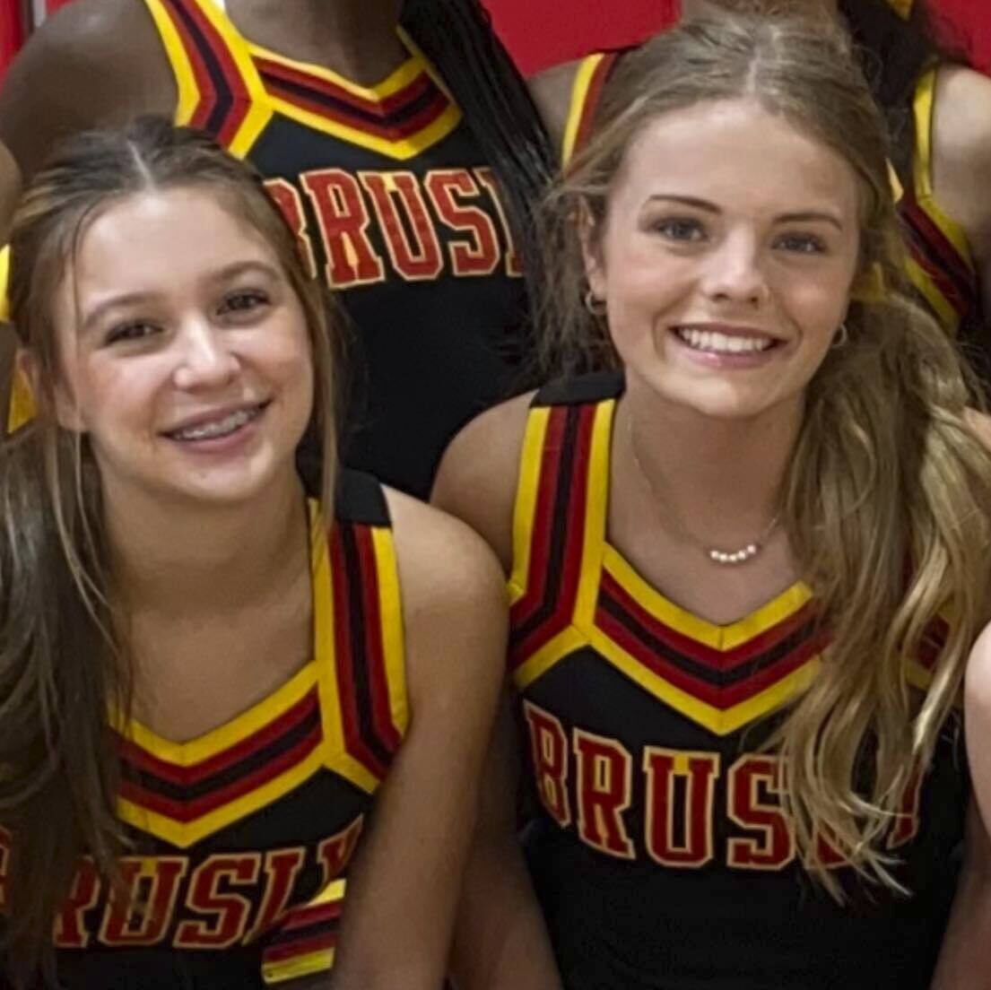 In this image provided by Janae Montgomery, Caroline Gill, left, and Maggie Dunn are shown in their cheerleading uniforms at Brusly High School in Brusly, Louisiana. Gill and Dunn were killed Saturday, Dec. 31, 2022, in a car crash.