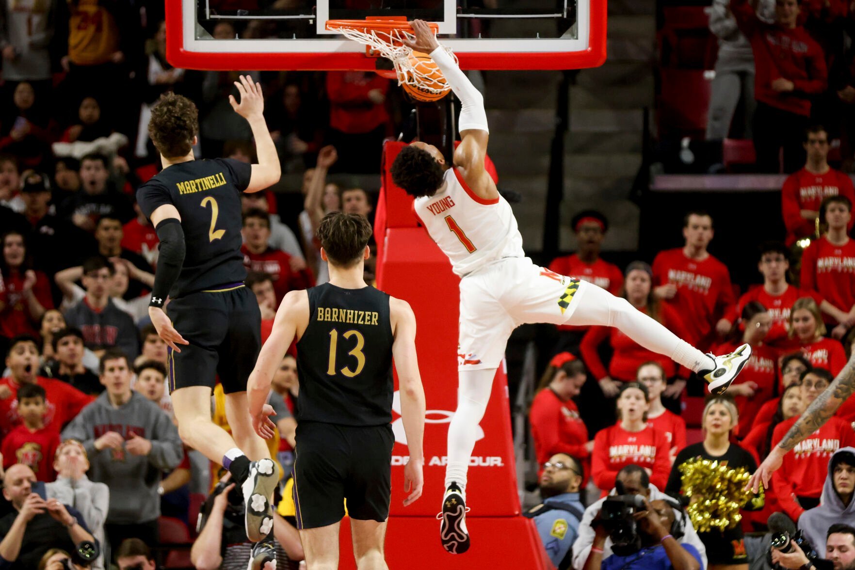 The 6-foot-1 Young threw down an emphatic dunk to give Maryland a 35-32 lead. He later made a 3 at the buzzer to put the Terps up 41-39 at halftime.