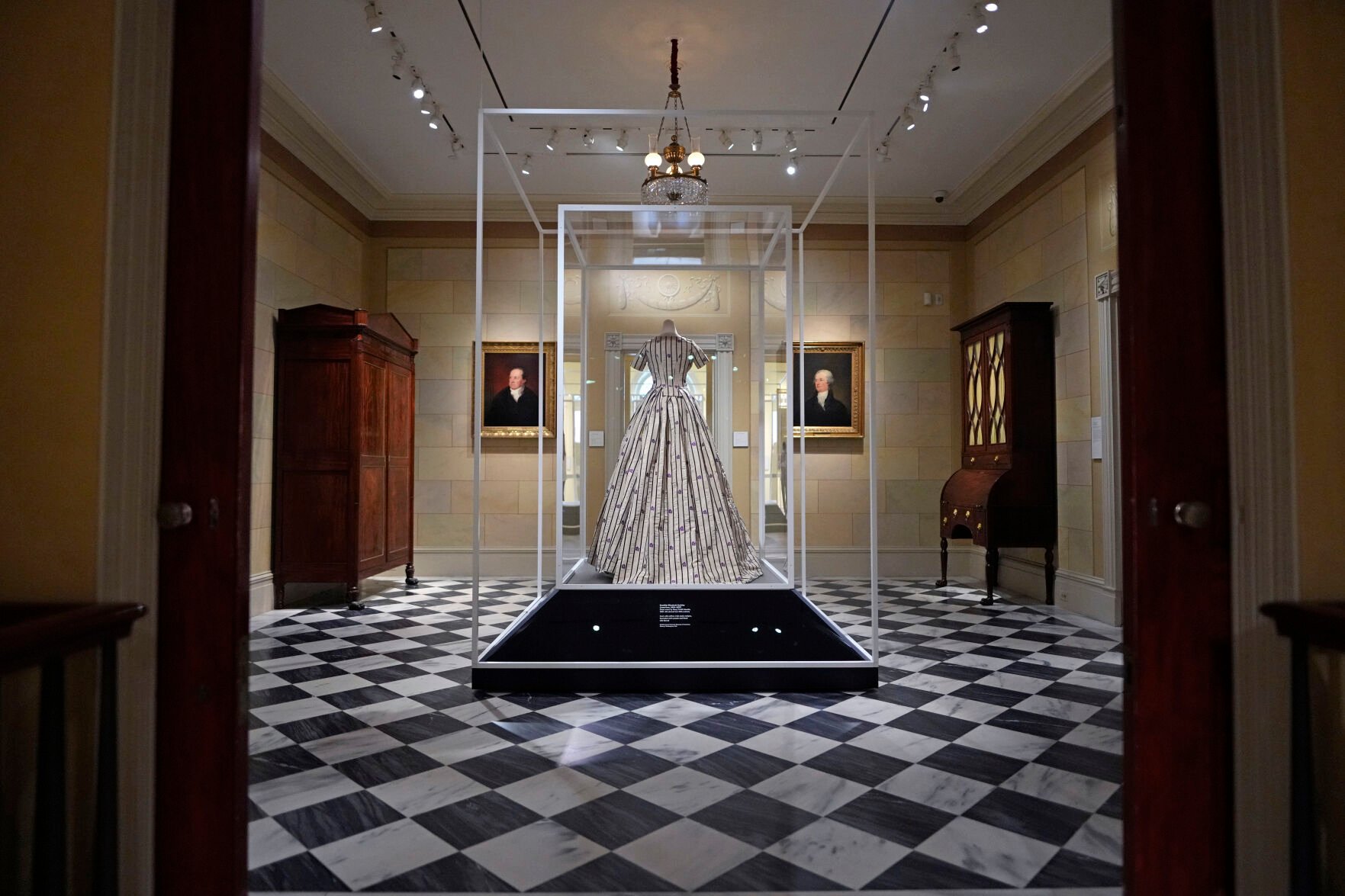 A dress worn by Mary Todd Lincoln is displayed as part of the Met Museum Costume Institute's exhibit "In America: A Lexicon of Fashion" during a press preview on Monday, May 2, 2022, in New York. (Photo by Charles Sykes/Invision/AP)