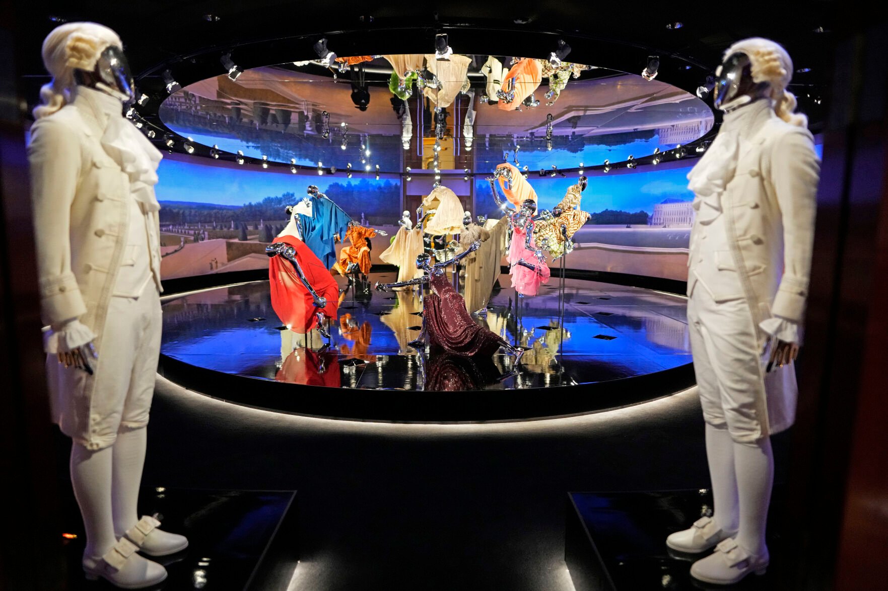 A scene entitled "The Battle of Versailles" staged by Tom Ford is displayed as part of the Met Museum Costume Institute's exhibit "In America: A Lexicon of Fashion" during a press preview on Monday, May 2, 2022, in New York. (Photo by Charles Sykes/Invision/AP)