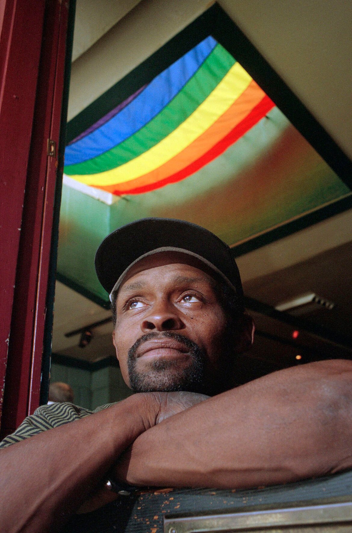 FILE - Former Major League Baseball player Glenn Burke sits in a Castro District restaurant in San Francisco in 1993. Burke's sexual orientation was known within baseball, but the former big league outfielder did not come out publicly until 1982. Burke, who died in 1995 at age 42, felt he was blackballed by the sport. (AP Photo/Mark Hundley)