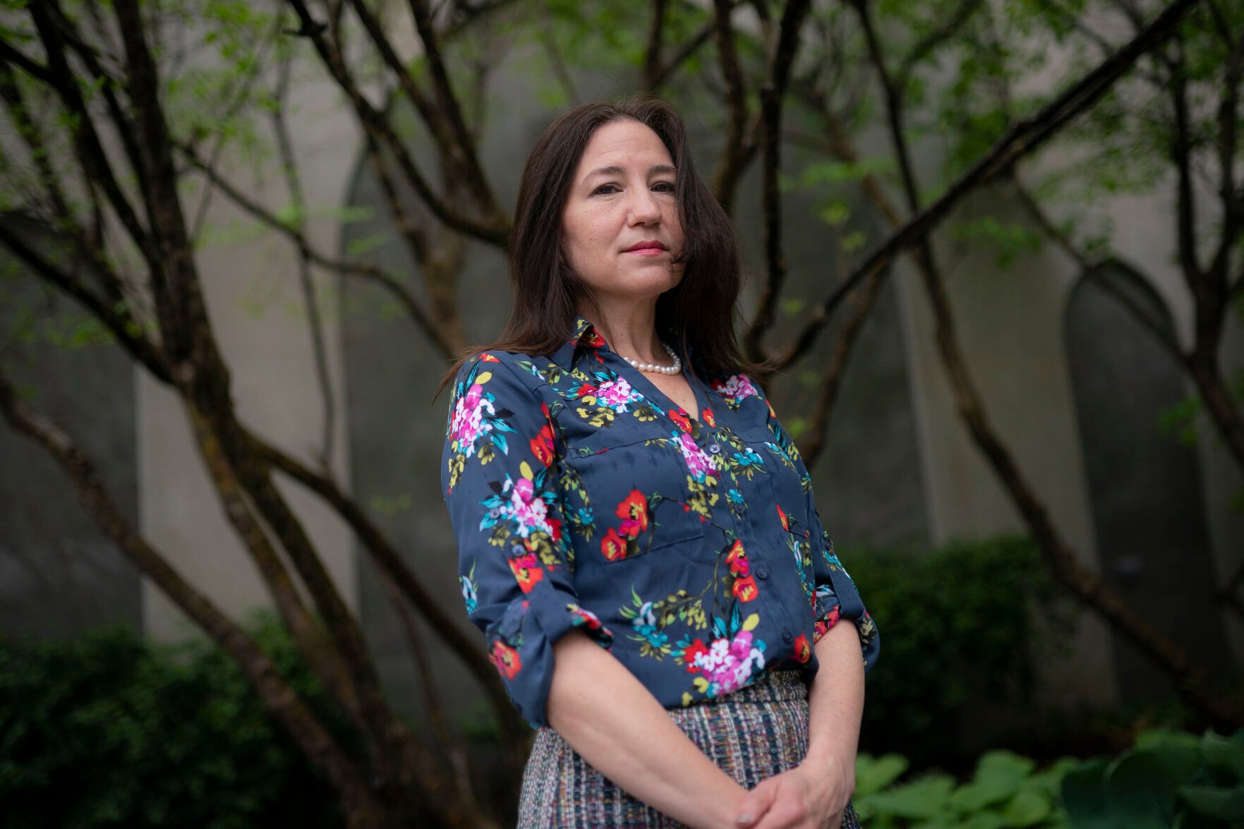 Allyson Jacobs stands for a portrait outside her workplace, Wednesday, May 4, 2022, in New York.