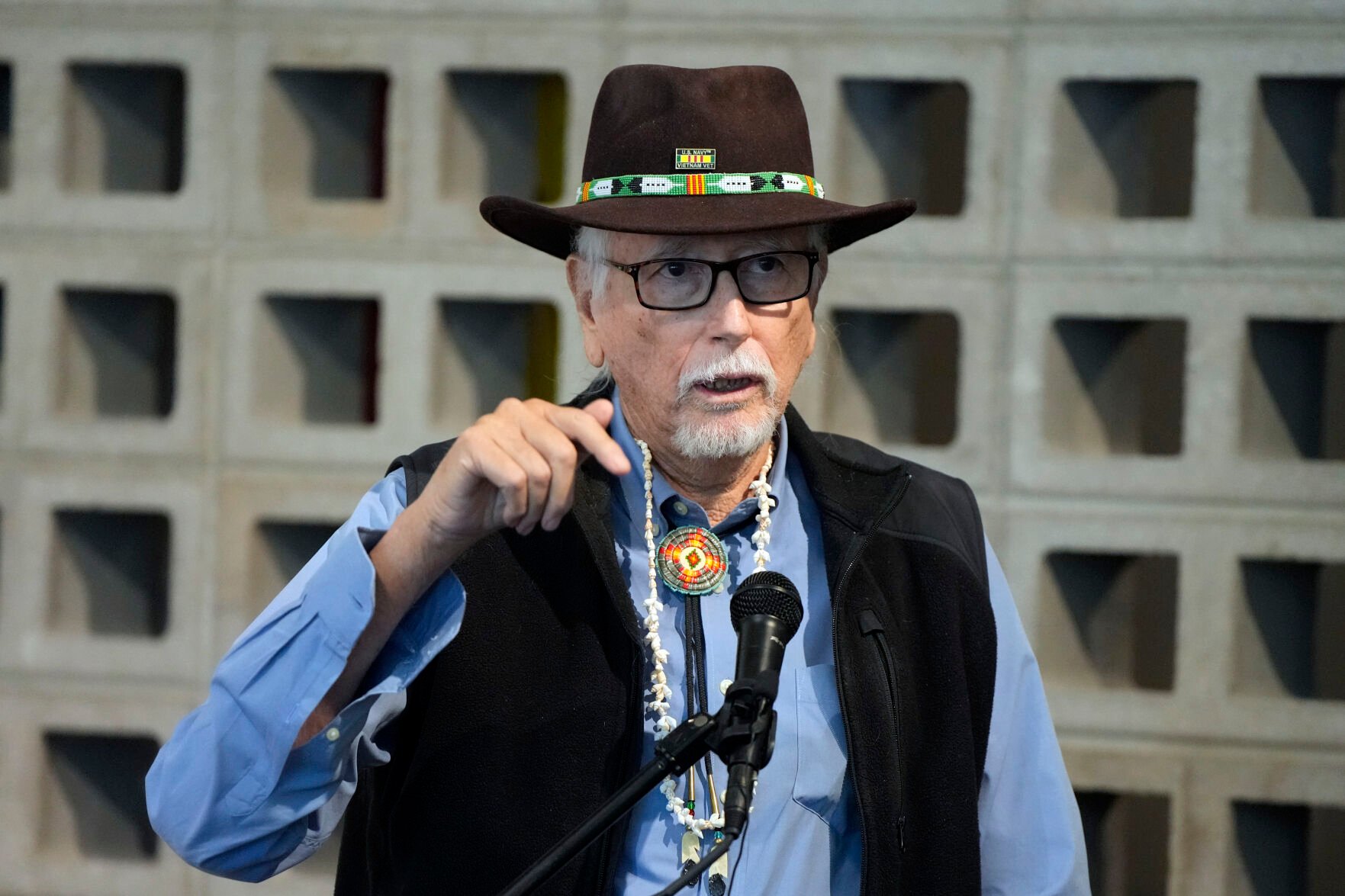 Dr. James Riding In speaks during a news conference by Native American advocacy groups, Feb. 9, in Phoenix.
