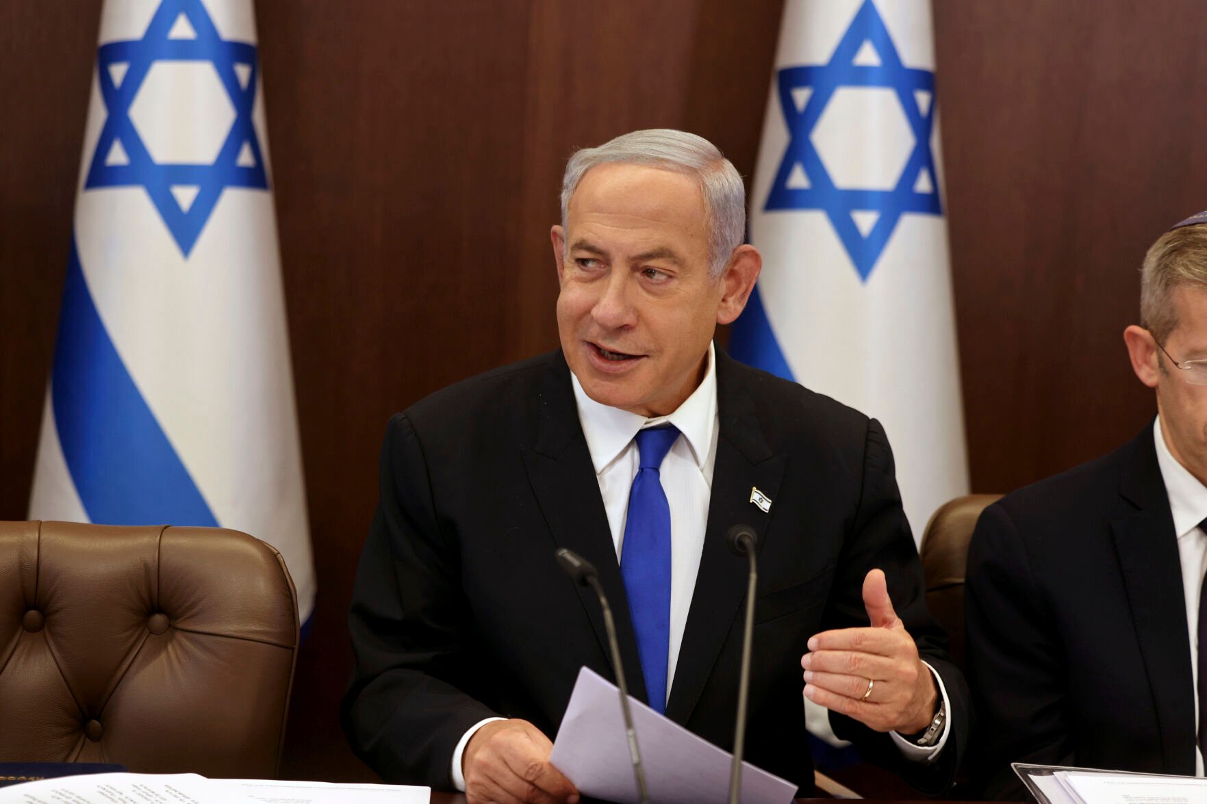 Israeli Prime Minister Benjamin Netanyahu speaks during a weekly cabinet meeting Sunday at the Prime Minister's office in Jerusalem.
