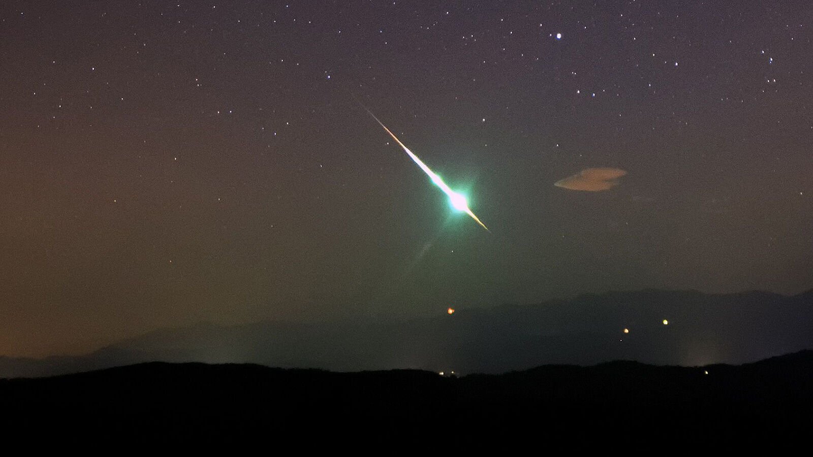 A bright fireball is seen above Brkini, Slovenia, on Nov. 12, 2015, during a Taurid swarm.