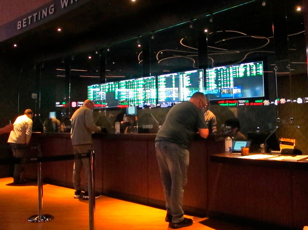 <p>FILE - People line up to make sports bets at the Borgata casino in Atlantic City, N.J., March 19, 2021. Gambling has gone from the forbidden topic in the NFL to a key part of the league's present and future. The days of lobbying against widespread legalized sports betting, preventing broadcast partners from even discussing point spreads and even prohibiting players from holding a fantasy football convention because it was at a casino are firmly in the past. (AP Photo/Wayne Parry, File)</p>