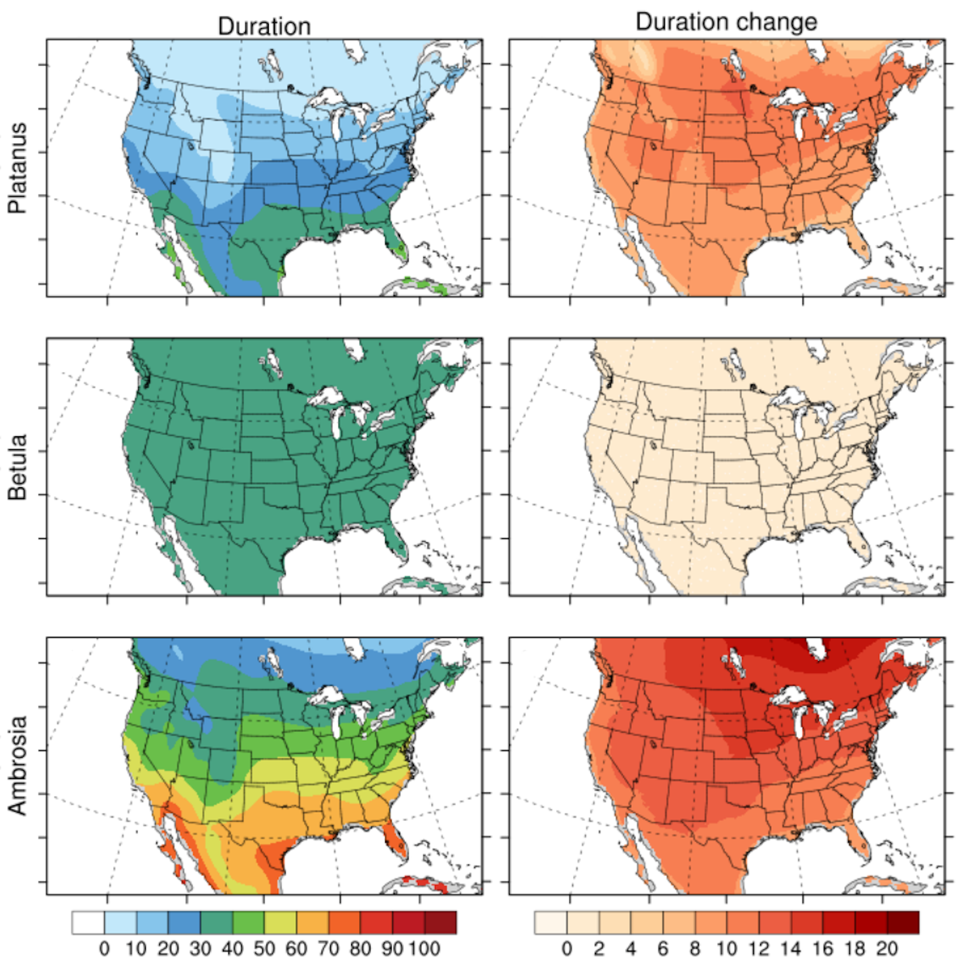 In general, pollen season will change more in the north than in the south, because of larger temperature increases in northern areas.