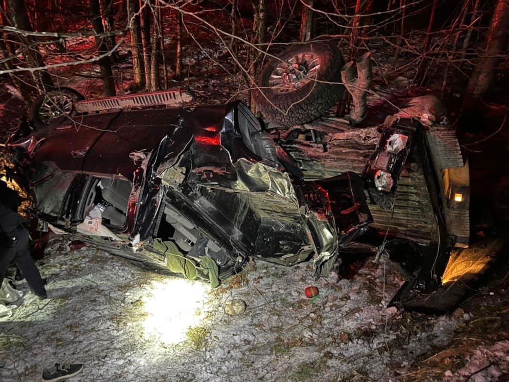 Two men inside the truck had been thrown from the vehicle and were injured and hypothermic, Lagace said.