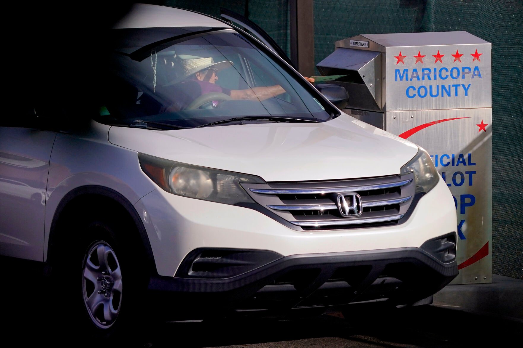<p>FILE - A voter casts their ballot at a secure ballot drop box at the Maricopa County Tabulation and Election Center in Phoenix, Nov. 1, 2022. After years of criticizing mail voting and trying to ban so-called "ballot harvesting," Republicans are reversing course. They are poised to launch aggressive get-out-the-vote campaigns for 2024 that employ just those strategies. (AP Photo/Matt York, File)</p>