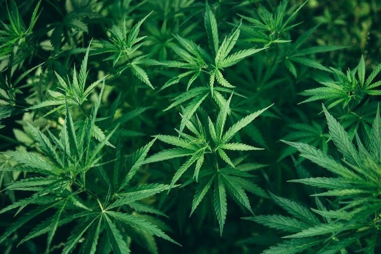 <p>While cannabinoids are produced in cannabis, the marijuana plant, they are also made in the human body. <a class="source" href="https://www.gettyimages.com/detail/photo/background-texture-of-marijuana-plants-outdoor-royalty-free-image/1258024915?adppopup=true">Iuliia Bondar/Moment via Getty Images</a></p>