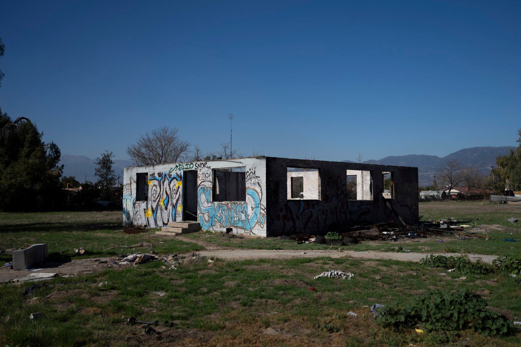 A building with graffiti sits in a commercial lot for sale in San Bernardino, Calif., Thursday, Dec. 8, 2022.