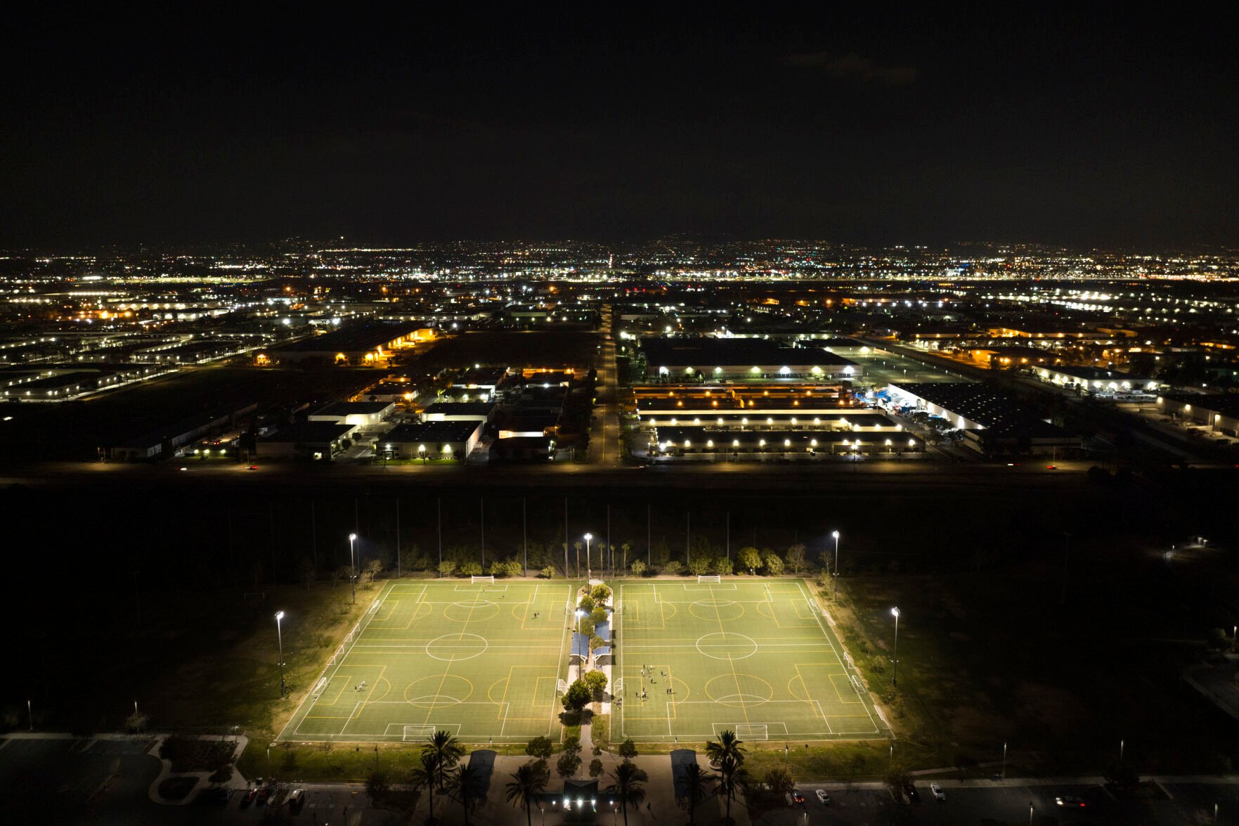 Children play soccer at the Ontario Soccer Park in Ontario, Calif., Wednesday, Dec. 7, 2022.