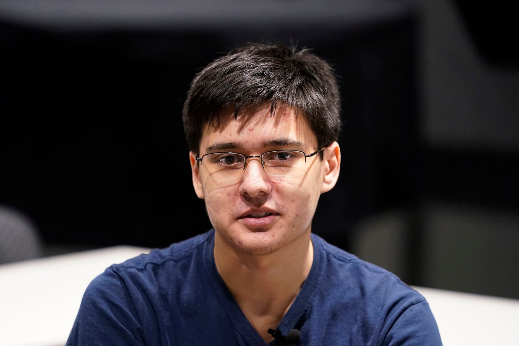 University of Michigan student Stanley Chapel solves a Rubik's Cube while blindfolded, Wednesday, Nov. 23, 2022, in Ann Arbor, Mich.
