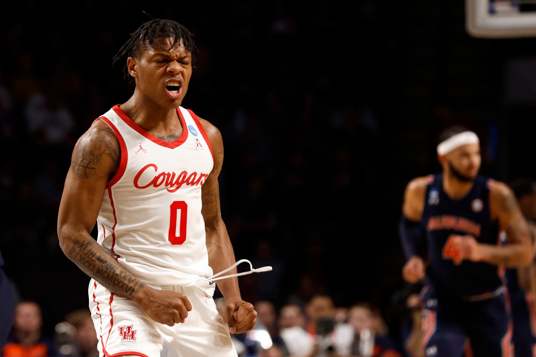 Houston guard Marcus Sasser reacts after a basket against Auburn during a game in the second round of the NCAA Tournament on Saturday in Birmingham, Ala.