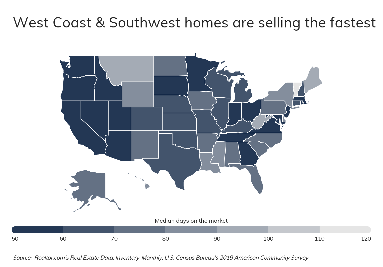 And as with all real estate, location matters. Demand—and with it, the speed of sales—are especially high in Western and Southwestern states that have been experiencing the highest rates of population growth. This includes the three states where homes are selling the fastest: Washington, Nevada, and Arizona.
