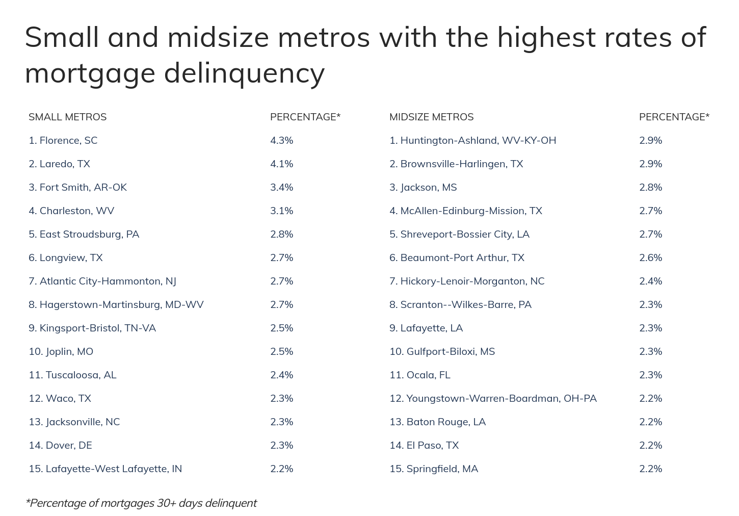 Large Metros With the Highest Rates of Mortgage Delinquency