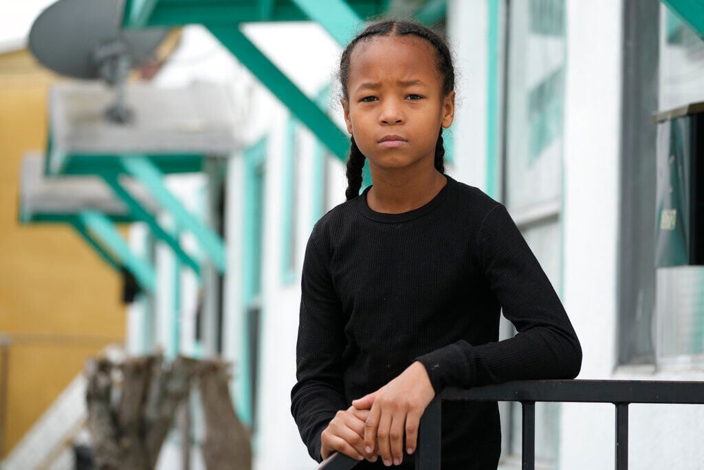 Ezekiel West, 10, stands for a portrait outside his home in Los Angeles on Sunday, Jan. 15, 2023.