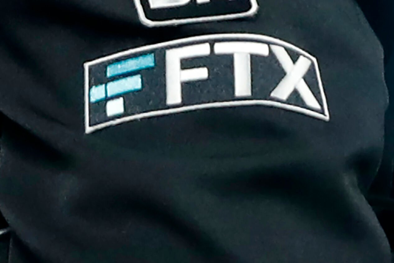 FILE - The FTX logo appears on home plate umpire Jansen Visconti's jacket at a baseball game with the Minnesota Twins on Sept. 27, 2022, in Minneapolis. The FTX bankruptcy filing followed a bruising of crypto companies throughout 2022, due in part to rising interest rates and the broader market downturn that has many investors rethinking their lust for risk. (AP Photo/Bruce Kluckhohn, File)