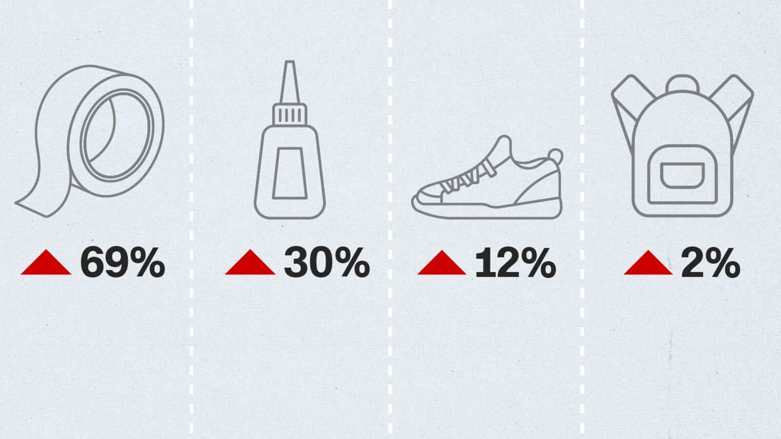 Mandelbaum noted items such as Scotch tape and Sharpies have seen some of the highest price jumps year-over-year.