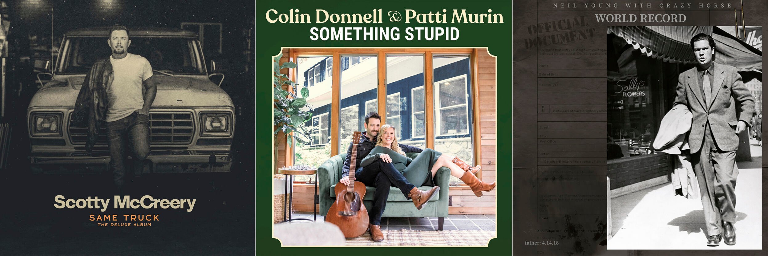 This combination of cover images shows Scotty McCreery's “Same Truck: The Deluxe Album,” left, Colin Donnell and Patti Murin's first joint album, “Something Stupid,” center, and "World Record" by Neil Young with Crazy Horse. (Triple Tigers/Broadway Records/Reprise via AP)