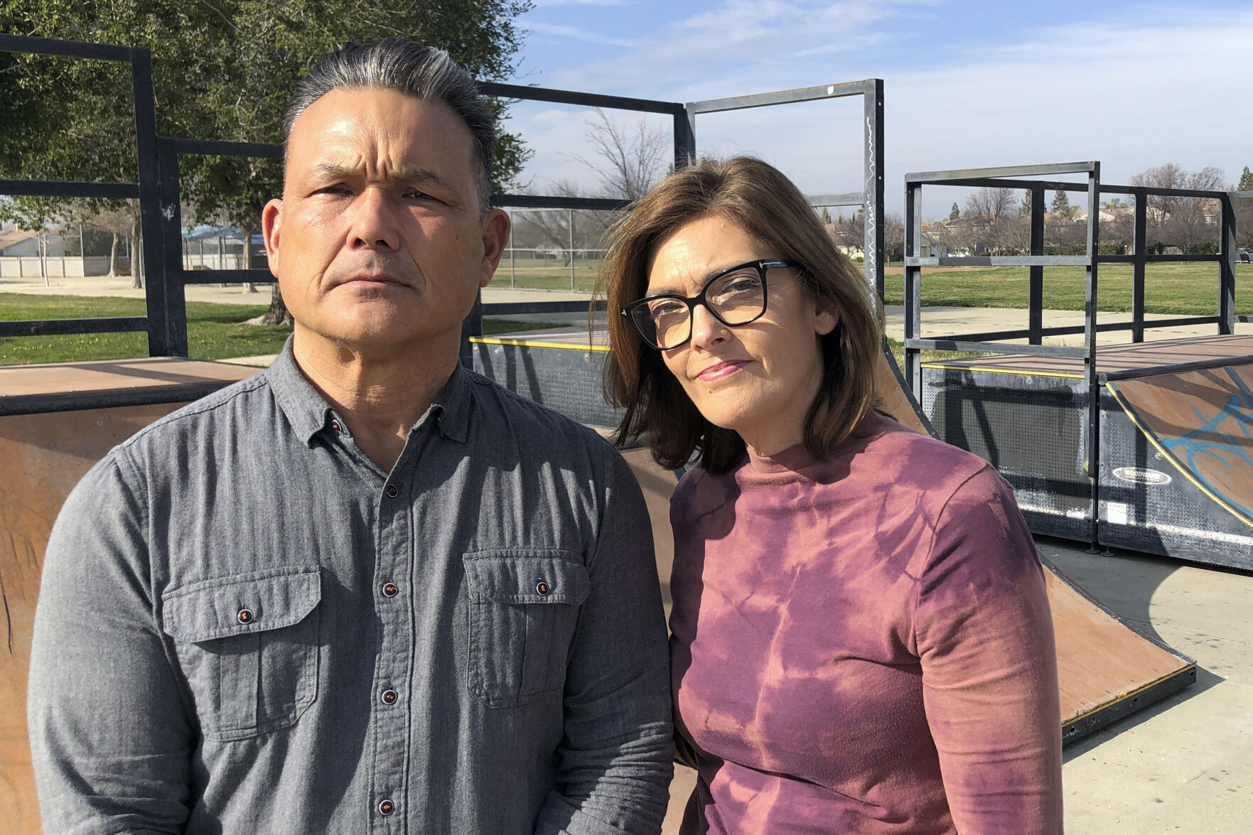 Curtis and Peggy Chapman stand at the Regency Community Park in Sacramento, Calif., on Friday, Jan. 27, 2023. Curtis, who was Tyre Nichols’ youth pastor, and Peggy remembered Nichols as someone with an adventurous spirit who was always trying difficult tricks on his skateboard at the park.